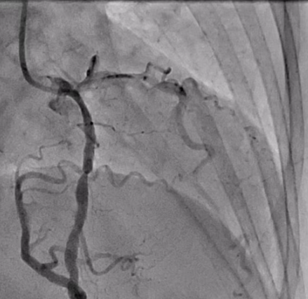 We describe herein the case of 67-year-old female with no known prior cardiac disease history who presented with chest pain and had a non-ST segment elevation myocardial infarction presentation.
