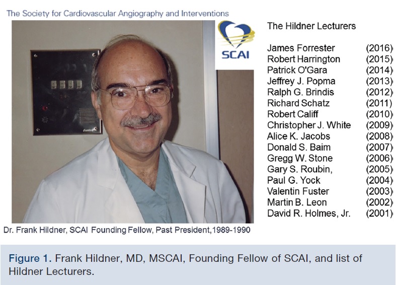 This year, the Society for Cardiovascular Angiography and Interventions (SCAI) celebrated the “40 for 40” event; that is, the 40th anniversary of percutaneous coronary intervention and the 40th anniversary year of the founding of the SCAI. On May 11, 2017, I was honored to be the Frank Hildner Annual Lectureship speaker. This lecture is dedicated to Dr. Hildner, one of the founding fellows of the SCAI and the founding editor of the journal Catheterization and Cardiovascular Interventions (Figure 1). The Hildner lecture series, now in its 17th year, brings innovative technology, important new developments, historical insights and healthcare issues relevant to the practice of interventional cardiology to the SCAI membership. Following the lead of my preceding luminaries in the field, I thought it would be informative and hopefully entertaining to synopsize, from a personal viewpoint, the 30-year history of the important developments that led us to use FFR and now iFR. I’ll share the highlights of this lecture with you.
