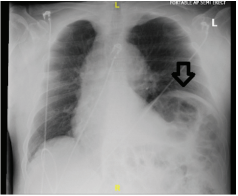 Cardiothoracic surgery was consulted for further evaluation and recommended outpatient follow-up. The patient was discharged in stable condition. He returned the next day with worsening chest pain. Cardiothoracic surgery was reconsulted and left video-assisted thoracoscopic surgery (VATS) with diaphragmatic plication was performed, with resolution of symptoms on follow-up (Figure 4).