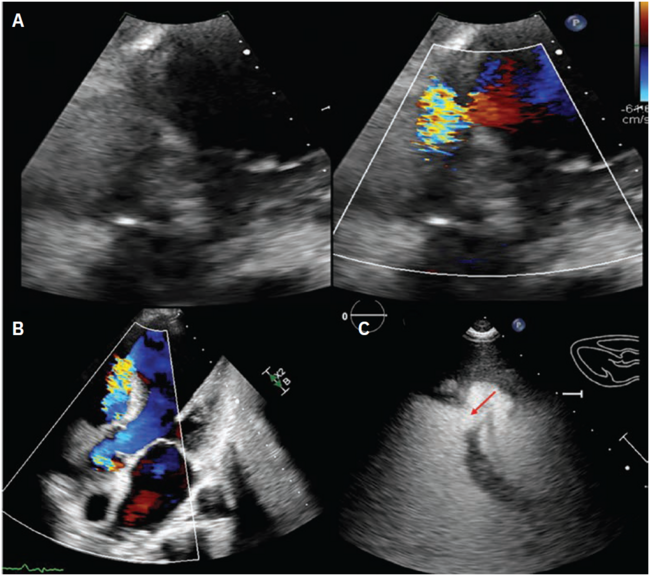 Transthoracic and transesophageal echocardiography showing severely reduced LV function and VSD.