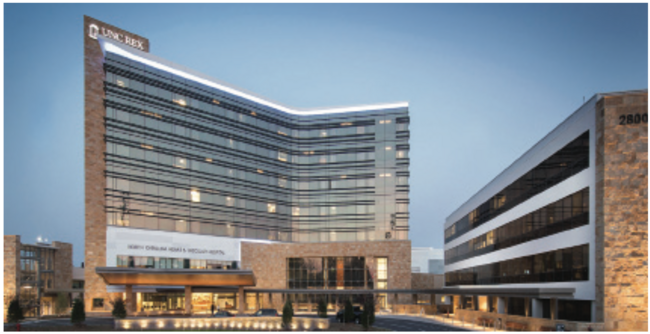 UNC Rex Healthcare, a private, not-for-profit hospital, is located in Raleigh, North Carolina. The new, eight-story, 306,000 square foot North Carolina Heart & Vascular (H&V) Hospital opened in March of 2017 to bring UNC Rex’s Heart & Vascular services together in one location on the hospital campus. Every aspect of the facility was designed with the comfort of patients and their families in mind. The design is based on research, best practices, and input from UNC Rex patients, physicians, clinicians, and caregivers. The Heart & Vascular hospital services include: