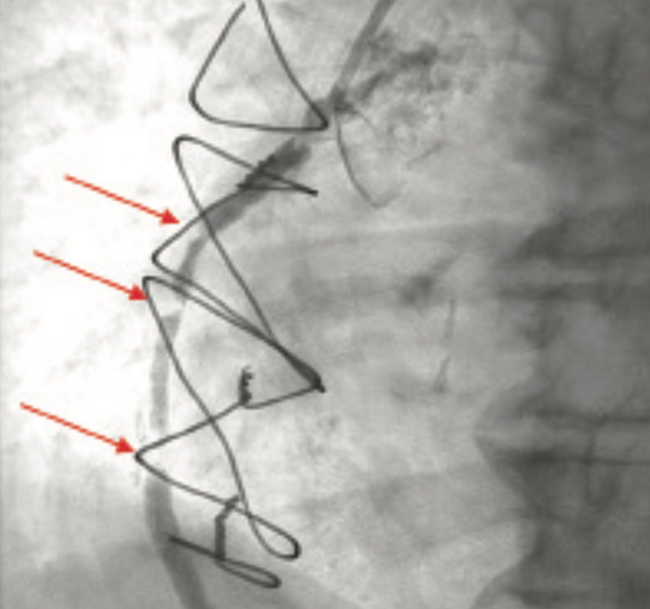 Coronary artery perforation (CAP) is a rare but serious, and potentially fatal, complication of percutaneous coronary intervention (PCI). CAP occurs when an intimal tear or dissection penetrates the arterial wall. Previous studies estimate the incidence of CAP during PCI is between 0.2 and 0.6%.1-4 While this is a rare event, it can lead to life-threatening complications, including cardiac tamponade.