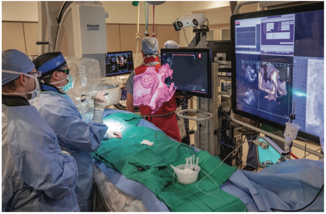 Dr. Dutcher: We started with LAAO as our first procedure, because the appendage is a complex, 3D structure and we felt having advanced imaging would be helpful. Another reason is that LAAO procedures are elective, generally considered lower risk, and are shorter procedures. When you have a brand-new technology, it is best to bring it into a safe, controlled environment. HTG will be helpful for even more complex structural heart procedures, such as repairing mitral and tricuspid valves. Once we develop better technologies for the tricuspid valve, HTG is going to be particularly useful for those procedures. It will also be helpful in visualizing holes in the heart, so imaging for an atrial septal defect or a ventricular septal defect, as well as for other complex congenital heart conditions.