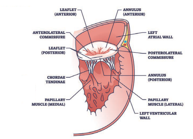 We often see patients that come in with acute myocardial infarction (MI), and even though in the current age of primary percutaneous coronary intervention, many patients do very well, we still have patients who within days to weeks can have pretty significant complications from their MI, including valvular heart disease. They can have acute severe regurgitation from a papillary muscle rupture or chordal rupture of the papillary muscle. Some patients may experience an acute left ventricular outflow tract (LVOT) obstruction because the entire heart is so affected by the MI that it is experiencing a type of hypertrophic cardiomyopathy physiology. Many of these patients who just had a heart attack are too sick to undergo open heart surgery. They may be in respiratory distress and their blood pressure is low. Their heart function is under stress, so their morbidity and mortality for open heart surgery is fairly high. You could try to manage them with just medical therapy, giving them medications to support their blood pressure. Unfortunately, however, a lot of these complications are mechanical in nature, so unless the underlying problem is fixed, the patient is not going to improve and usually tends to spiral down. We can sometimes manage these acute complications with transcatheter therapies. Data are fairly scarce on using transcatheter edge-to-edge repair (TEER) for papillary muscle rupture, for example. The patients that were studied in all the trials were stable patients, so they had either a dilated ventricle causing functional mitral regurgitation, meaning the leaflets are functionally normal but are just not coming together because of a dilated ventricle, or patients who had more degenerative disease, where the leaflets became degenerated and would prolapse. We are very comfortable with treating those kind of pathologies, and can now treat patients with degenerative or functional mitral regurgitation who are on medical therapy with TEER, either with the MitraClip (Abbott) or Pascal (Edwards Lifesciences). However, a chordal rupture or a papillary muscle rupture can occur in patients who have had a large MI. The mitral valve is attached through little strings which are called chordae and then to two papillary muscles (Figure). If a papillary muscle is involved and infarcts completely, it can become very friable tissue. When that tissue becomes friable, depending on what area is affected, either the entire muscle can come loose, meaning the little chords with a little piece of muscle become completely mobile, or the chords rupture. If multiple chords rupture, the valve becomes completely dysfunctional. One reason patients experiencing a chordal rupture get so sick is because they go from no mitral regurgitation or very minimal mitral regurgitation to severe mitral recitation, probably in the course of a few hours. The heart cannot tolerate that. Other people who we treat more traditionally have developed mitral regurgitation over the course of years, so the heart slowly adjusts to the leakage. Of course, they still don’t feel well and have shortness of breath, but they don’t get acutely ill. These patients get acutely ill, have very low blood pressure, and need to be intubated.