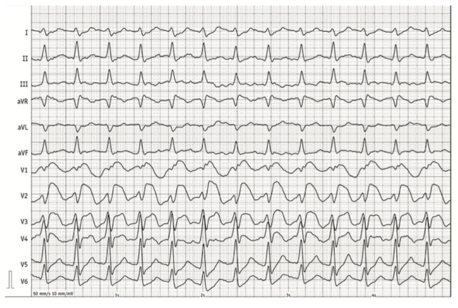 To further evaluate the presence of Brugada syndrome, an ajmalin test (Figure 5) was carried out, which did not unmask a drug-induced Brugada ECG.