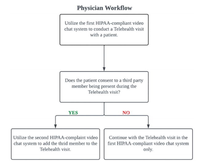 TeleMedstudent utilizes 2 HIPAA-compliant simultaneous proprietary video platforms with screen sharing. This dual platform gives the clinician control over both video interfacing systems (including video and audio) and active participants’ commands during the encounter. With TeleMedstudent, physicians and health care workers can conduct virtual clinics while also using it as a medical education tool. Medical students can be allowed access to the encounter through the video platform, and patients can be allowed access through a completely separate platform. The clinician is able to simultaneously interface and monitor both platforms. Screen sharing allows one platform to communicate with another platform in real time.