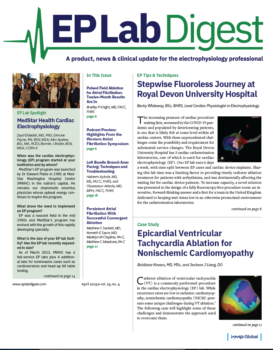 In this month’s issue, we highlight the EP program at MedStar Washington Hospital Center, which has 6 full-service EP labs and 4 additional labs for noninvasive cases.