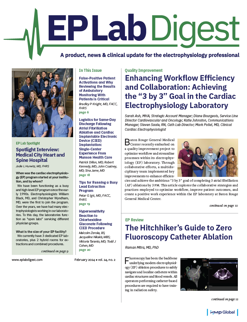 Sarah Ash, MHA, and colleagues discuss the collaborative strategies and practices employed to optimize workflow, improve patient outcomes, and create a positive work experience within their EP laboratory.