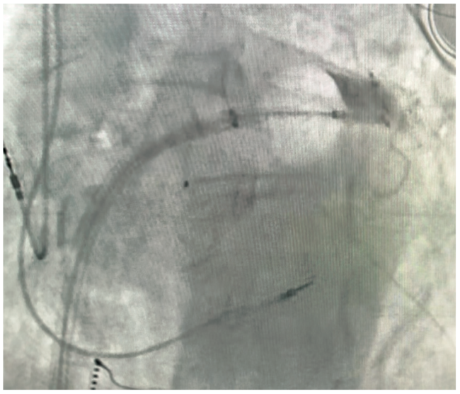 Video 1. Fluoroscopic view of the CB ablation catheter advancing to PV ostium, followed by IV contrast injection and demonstrating complete PV occlusion.