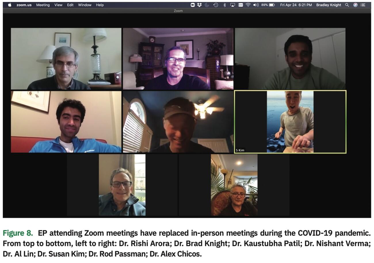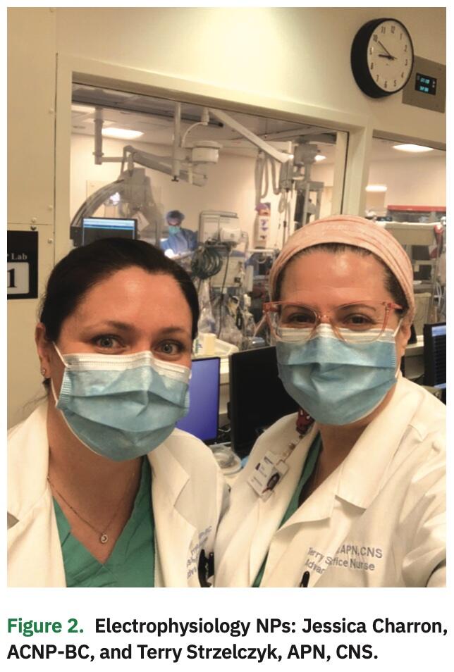 In the early months of the pandemic, our lab devised a schedule for the staff to minimize exposure to each other by dividing into 3 groups. Each group was assigned to specific days in the lab. This method not only prevented a communal spread should one staff member contract COVID, but it freed up staff on their non-lab days to help out in different capacities, either in the COVID ICU providing primary nursing care, the COVID testing drive-up swabbing patients for COVID, the COVID line calling patients who have tested positive, or working security throughout the hospital to ensure people are in the right place. Our physicians took on placing central and arterial lines in the COVID ICU. To free up resources, we limited our cases and focused mainly on generator changes, urgent device implants, and highly symptomatic patients needing ablations. We avoided anything requiring a transseptal puncture or overnight stay, and tried to focus on cases using moderate sedation, allowing anesthesia availability to help cover needs in the COVID ICU. Clinic appointments were primarily done via telemedicine, and the MyChart EMR patient portal was utilized to submit photos for incision checks.
