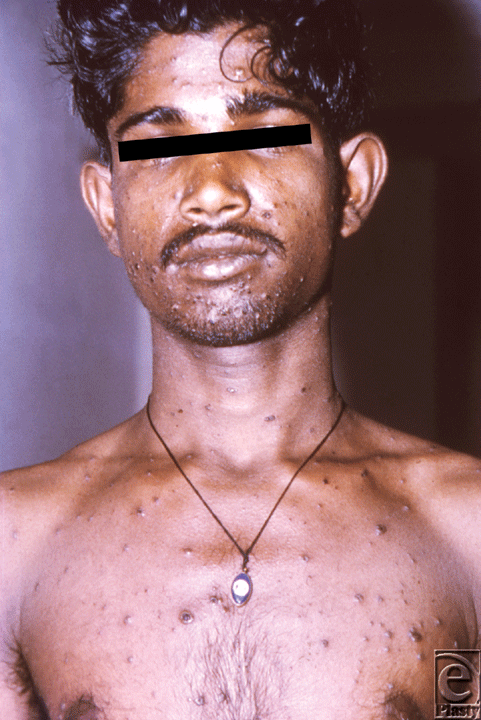 | Figure 1. Man with small pox displaying the characteristic maculopapular rash. Source: Public Health Images Library (PHIL) id# 12165. |