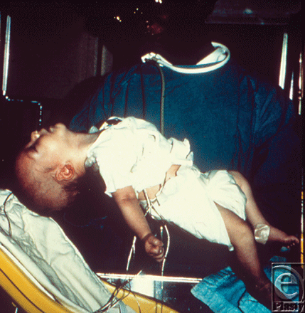 | Figure 5. Six-week-old infant with botulism, which is evident as a marked loss of muscle tone, especially in the region of the head and neck. Source: Public Health Images Library (PHIL) id# 1935. |
