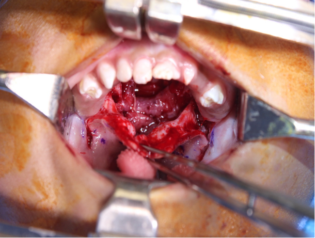 Closure of wide palatal defects poses an operative challenge. Many operative techniques have been described for both soft and hard palatal defects.1-2 The primary goal of palate repair is palatal lengthening and reorientation of the palatal musculature to achieve velopharyngeal competence.1-2 While closure of soft palatal defects in wide clefts is typically achieved with utilization of lateral relaxing incisions, a multilayered closure of anterior defects is more challenging. Often, palatal length must be sacrificed to allow for tension-free closure of the repair, especially when the cleft is wide. This can result in poor velopharyngeal functioning and the need for additional speech surgeries.