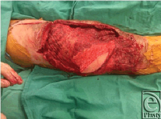 In many cases of soft-tissue deficiency, bone loss, and extensor mechanism compromise resulting from TKA and multiple revisions, the required course of action is to convert to arthrodesis or proceed with a transfemoral amputation.4-6 If the decision is made to attempt further revision to preserve the knee joint, then the role of the plastic surgeon is to reconstruct adequate soft-tissue mass to envelope the prosthesis and to restore a functional extensor mechanism.