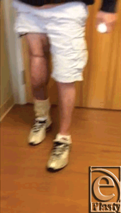 | Figure 4. Patient walking on reconstructed right knee implant with muscle flap and allograft approximately 3 months after simultaneous reconstructive procedure. |
