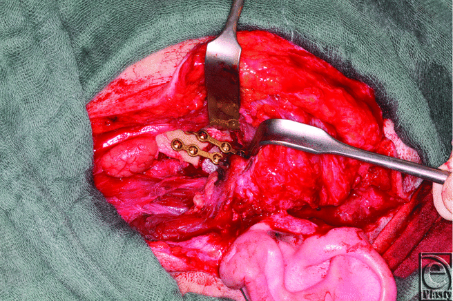 | Figure 2. Osteosynthesis of the rib graft with 2 mini plates. |