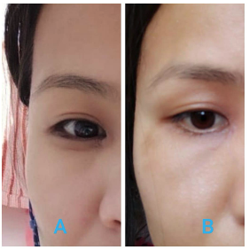 A 28-year-old woman presented with a painless swelling in right periorbital region, just below the medial canthal area (Figure 1A). The swelling was present since childhood and used to become more prominent during flu attacks. It was not associated with pain, but there was occasional watering from the same side. On examination, the swelling was located inferior to the right medial canthus and measuring about 0.5 cm × 0.5 cm. The mass was nontender, compressile, semimobile, nontranslucent, and nonpulsatile with smooth overlying skin. The borders were regular but not well-defined, implying a deep-seated mass.