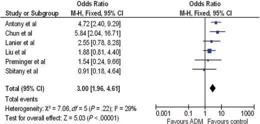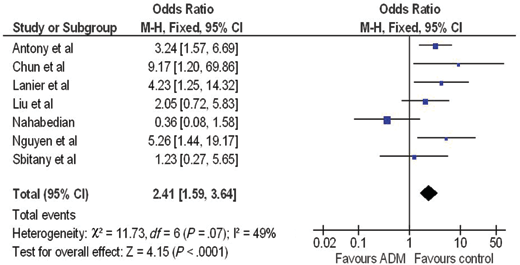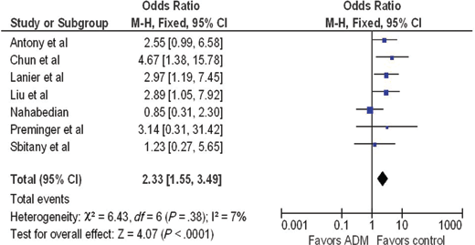 | Figure 2. Forest plot of rate of infections between groups. ADM indicates acellular dermal matrix. |