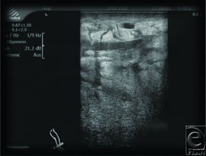 | Figure 6. Patient 2. Preoperative sonographic control with massive enlarged lymphatics. |