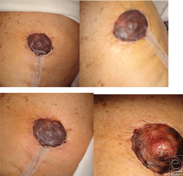 This series represents a postoperative case of questionable nipple-areolar compromise after reduction mammoplasty. On postoperative day 2, nipple compromise was deemed equivocal by on-site examination. The patient lived far from the facility and could not come in for daily evaluations, prompting a decision to closely monitor via twice daily digital photographs through e-mail. Uneventful evolution of nipple demarcation ensued over 2 weeks (Fig 5).