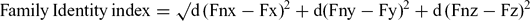 2. Displacement vector was calculated as the difference between 3D coordinate values at set landmark location of individual family member and corresponding mean family values and was called family identity index for that landmark.