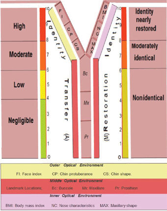 | Figure 11. Identity indices (mm) of recipients plotted on biophysical identity chart indicating if facial allotransplantation resulted in identity transfer. |