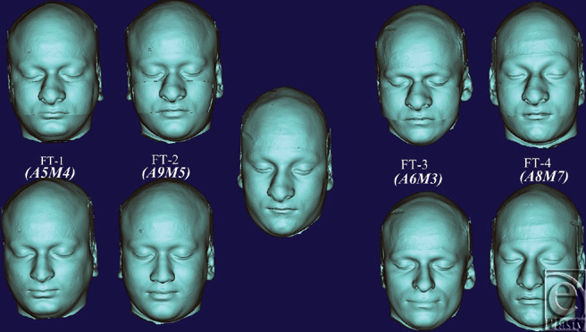 However, no study quantifies and predicts identity changes accompanying altered morphology of overlying soft tissues and geometry of underlying bony framework. Only 9 face transplants have been done around the world,7 and experimental nature of facial allotransplantation itself is a limiting factor in decision-making with regard to donation and receipt of facial grafts. A method is urgently required that not only predicts and quantifies the identity changes but also can be used as a scientific tool to educate potential recipients and donors to advance the noble cause of facial allotransplantation.