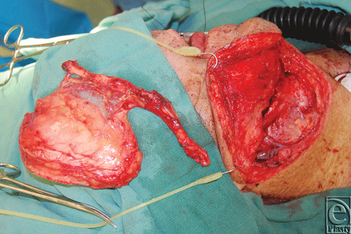 | Figure 5. Inset of the ALT flap over large head and neck defect. |
