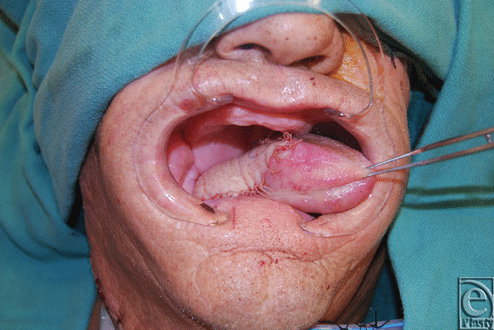 | Figure 6. Resultant photograph showing reconstruction of the tongue and check with free ALT flap. ALT indicates anterolateral thigh. |