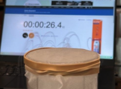 A subsequent set of visual observations evaluated whether carbon dioxide gas would penetrate the manufactured holes in porcine collagen–bonded nylon and silicone dressing membrane. To do so, 2 g of carbon dioxide was added to 50 mL of water and the container was immediately covered and sealed with Biobrane.