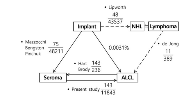 Conclusion: If late seroma develops after breast implant insertion, ultrasonography- guided aspiration should be performed, with enzyme-linked-immunosorbent serologic assay for CD30.