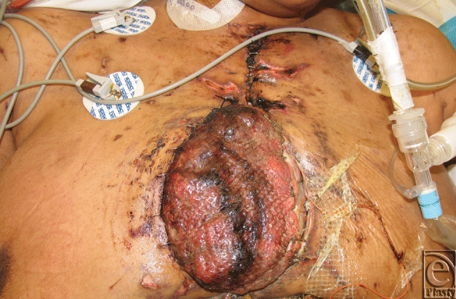 | Figure 2. Myocutaneous advancement flap and DualMesh Plus closure of sternal defect. |