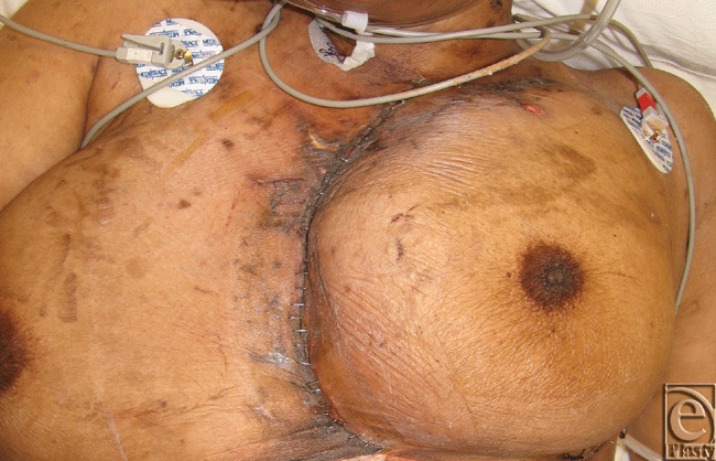 | Figure 4. Closure of sternal defect using a large rotational flap from the left chest. |
