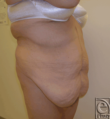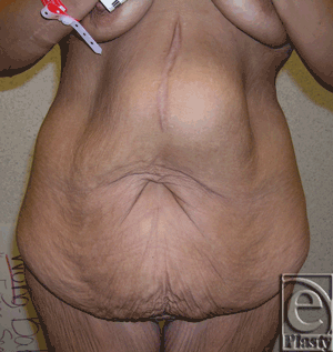 | Figure 5. Preoperative frontal view of patient 10 showing a large symptomatic panniculus. |