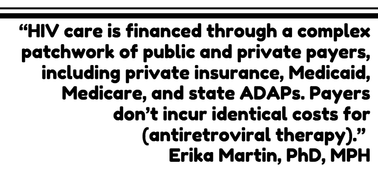 “HIV care is financed through a complex patchwork of public and private payers, including private insurance, Medicaid, Medicare, and state ADAPs,” they wrote. “Payers don’t incur identical costs for (antiretroviral therapy).”