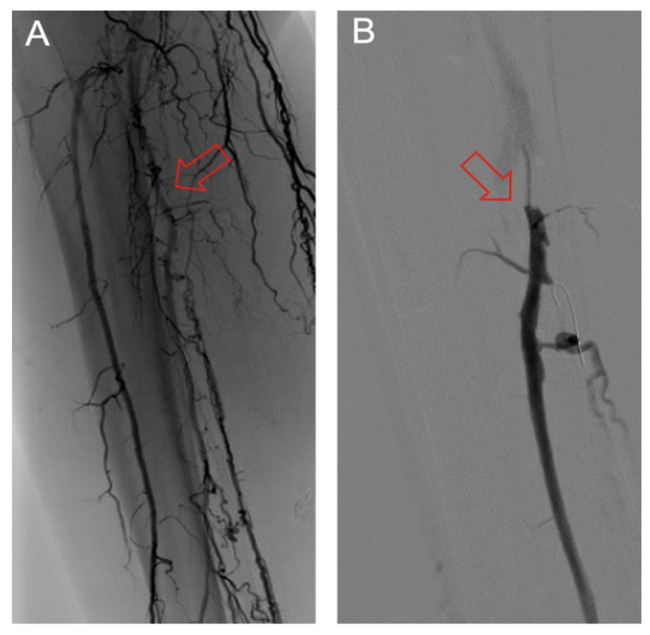 Data collection. A retrospective patient chart and angiographic image review was performed for all DVA procedures performed by 2 operators in both a single community hospital and an office-based laboratory setting between January 2018 and July 2022. Patient demographics including initial DVA date, anatomical location of DVA, date of reintervention, time between initial and reintervention procedures, location of failure relative to DVA site, and corresponding reintervention strategies were recorded. Patients that underwent below-knee or above-knee amputation at any point during the study were considered clinical failures and excluded from the cohort. The primary outcome measured was the frequency of each pattern of DVA failure as identified at the time of reintervention, as well as the specific reintervention strategies employed.