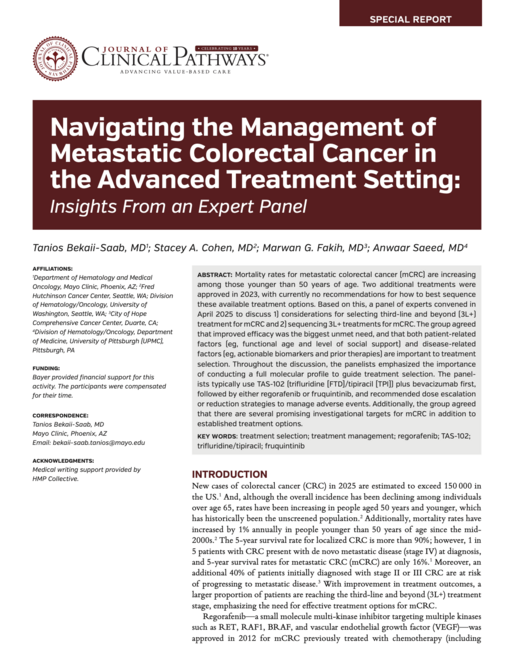Navigating the Management of Metastatic Colorectal Cancer in the Advanced Treatment Setting: Insights From an Expert Panel