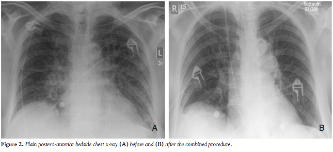 Case Report. An 84-year-old, diabetic, hypertensive and obese woman presented with a non-ST segment elevation myocardial infarction and impending pulmonary edema. She gave history of recently worsening dyspnea on minimal exertion (New York Heart Association class III) together with effort angina on mild exertion with marked limitation of her ordinary activity (Canadian Cardiovascular Society class III) over the previous 6 months. Cardiac examination revealed the presence of a harsh ejection systolic murmur over the cardiac base radiating to the neck (grade IV), and bilateral fine rales were audible over the basal and mid fields of her lungs, denoting pulmonary congestion. Her electrocardiogram showed ST-segment depression and T-wave inversion in the lateral chest leads (V3–V6) together with leads I, aVL and lead II (Figure 1), and her chest x-ray confirmed the presence of severe pulmonary congestion (Figure 2A). Troponin T, total creatine kinase (CK) and CK-MB were elevated. An echocardiography done a few months before admission showed evidence of severe aortic stenosis, yet the patient
