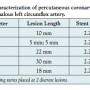 the obstructive lesion was located in the proximal and mid body of the vessel and never at the ostium. The mean stent diameter was 2.25 mm, with a mean length of 15 mm (Table 3). The other 13 patients, of which 11 had coronary disease of the ALCx, received medical therapy; at a mean follow-up of 18 months, there was 1 non-cardiac death in the medical management group, with the remainder of patients (n = 17) being free of major adverse cardiac events (MACE), defined as target lesion revascularization, target vessel revascularization, or death.