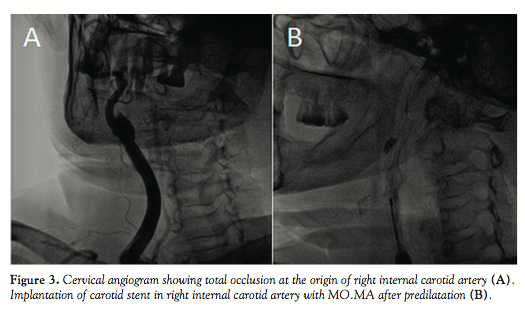 Conclusion. The presented case demonstrates the feasibility and safety of the Invatec Mo.Ma proximal cerebral protection device and ev3 Solitaire retrievable stent combination in acute ischemic stroke patients with extra- and intracranial tandem occlusions.