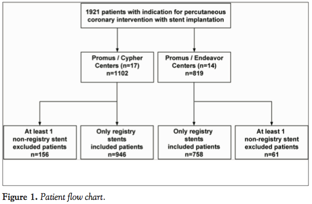 Patients and procedures. Patients undergoing percutaneous coronary intervention (PCI) with at least one lesion suitable for stenting with one of the study stents in accordance with the instructions for use were considered eligible for the PROENCY registry. There were no clinical or angiographic exclusion criteria to allow for an all-comers design. The use of dual-antiplatelet therapy and other concomitant medication was according to standard medical practice.