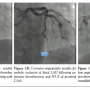 embolization of thrombus from the mid-RCA (Figure 4B). With clinical resolution of the myocardial infarction, TIMI-3 flow in the vessel, and only mild focal stenosis of the mid-RCA, no invasive intervention was undertaken. The patient was managed on aspirin, IV unfractionated heparin, and clopidogrel while in hospital, and was discharged on aspirin and warfarin with the plan for indefinite systemic anticoagulation in light of coronary ectasia and likely in situ thrombosis.