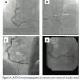 Despite these potential complications, there are many documented cases of successful percutaneous exclusion of CAA using PTFE-covered stent technique, such as in Case 3. Lee et al reported their experience with a patient with CAA who presented with ACS and was treated with AngioJet rheolytic thrombectomy (Medrad) followed by covered JoStent placement (Abbott Vascular).24 The authors suggest that exclusion of the aneurysm with a PTFE-covered stent graft would eliminate sluggish flow through the (previously) aneurysmal segment, and would reduce the likelihood of aneurysm thrombosis, enlargement, or future rupture. Follow-up angiography was not performed, but the patient remained asymptomatic at 1 year. Briguori et al described 8 patients with CAA treated successfully with PTFE-covered stents with 0% in-hospital major adverse cardiovascular events.21 Angiographic follow-up at 10 ± 6 months was performed in all patients, and was notable for in-stent restenosis in 12.5%, which required target lesion revascularization.21 At 35 ± 8 months, 6 patients were symptom free.21 Bare-metal stent (BMS) implantations have also been used successfully in the treatment of CAA, yet are often used when PTFE-covered stent delivery is unsuccessful. Iakovou et al described 3 such cases where CAAs were treated with BMS.20 They observed immediate stagnation of contrast within the space between stent and aneurysm wall; at 10 ± 6 months of angiographic follow-up, all aneurysms had been completely abolished. However, 2 of the lesions had in-stent restenosis requiring placement of an additional drug-eluting stent (DES).20 There are also rare case reports of successful hybrid interventions using both PTFE-covered stent and BMS involving CAAs with bifurcation lesions and tapering CAAs.25,26