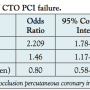 Statistical analysis. Data are presented as mean ± standard deviation or percentages. Event rates were estimated using the Kaplan-Meier method. Follow-up was censored at date of last follow-up or at 5 years, whichever came first. Survival curves using all available follow-up data were constructed for time-to-event variables using Kaplan-Meier methodology. Event rates were compared by log-rank test. Multivariable logistic regression was performed to identify predictors of CTO PCI failure, with the following potential co-variables included: gender (women vs men); CTO length; CTO location; bridging collaterals; blunt stump; side branch proximal to CTO, and calcification. Formal interaction tests were performed to determine whether gender affected the relative risk of mortality or the need for CABG surgery after successful versus failed PCI. Statistical analyses were performed using SPSS version 17.0 (SPSS Inc).