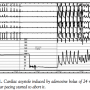 A single bolus of adenosine-induced atrioventricular block (mean duration, 18.6 ± 6.6 seconds) followed by cardiac asystole in 16 patients (80%), 9 low-dose patients versus 7 high-dose patients.