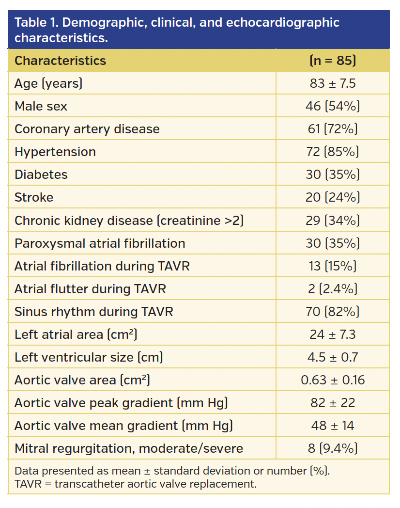 Left atrial appendage (LAA) thrombus by preprocedural computer tomography or transesophageal echocardiogram (TEE) has been associated as a potential cause for periprocedural stroke in transcatheter aortic valve replacement (TAVR).1,2 Impairment of left atrial (LA) function occurs in various disease processes, including hypertension, hypertrophic cardiomyopathy, dilated cardiomyopathy, heart failure, atrial fibrillation, coronary artery disease, and, importantly, degenerative aortic stenosis (AS).3-9 The common denominator of these diseases is the development of left ventricular hypertrophy with systolic and (more commonly) diastolic dysfunction, which leads to increased LA pressure, LA remodeling, fibrosis, and frequently LA dysfunction.10