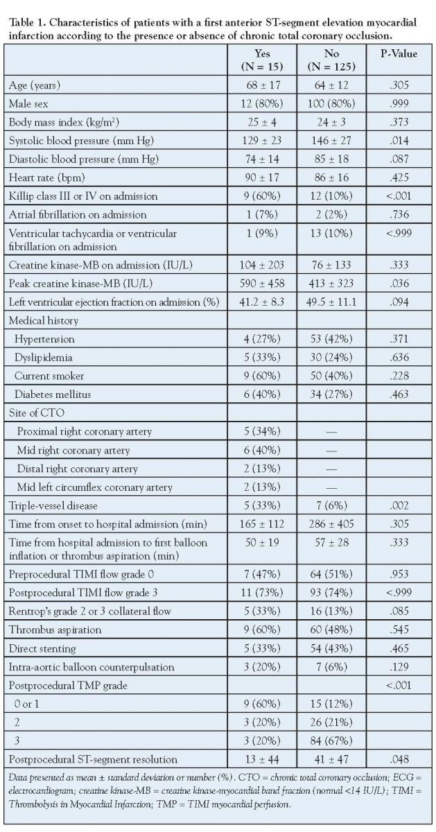 A large cohort study by van der Schaaf et al discovered that CTO, but not multi-vessel disease per se, is an independent predictor of 1-year mortality in patients treated with PCI for STEMI accompanied by multi-vessel disease.3 Similar to their study in which only a fraction of the patients with CTO had a previous myocardial infarction, the present study included only patients with no obvious medical history of previous myocardial infarction.