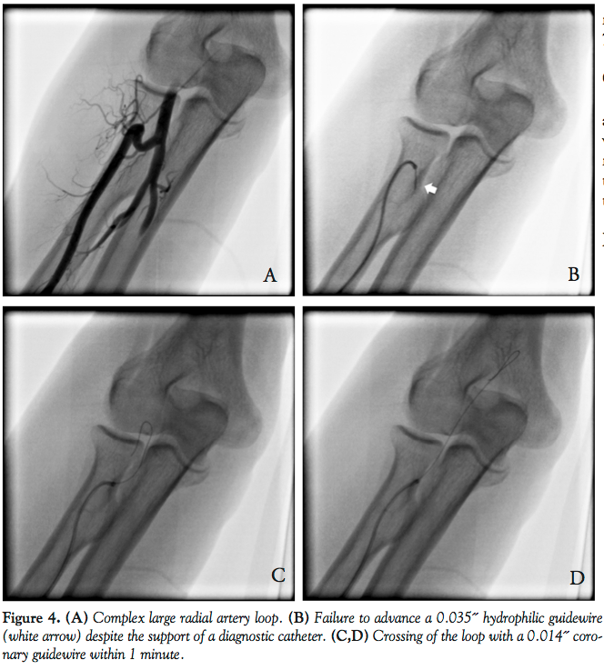 - Barbeau GR. Radial loop and extreme vessel tortuosity in the transradial approach: advantage of hydrophilic-coated guidewires and catheters. Catheter Cardiovasc Interv. 2003;59(4):442-450.