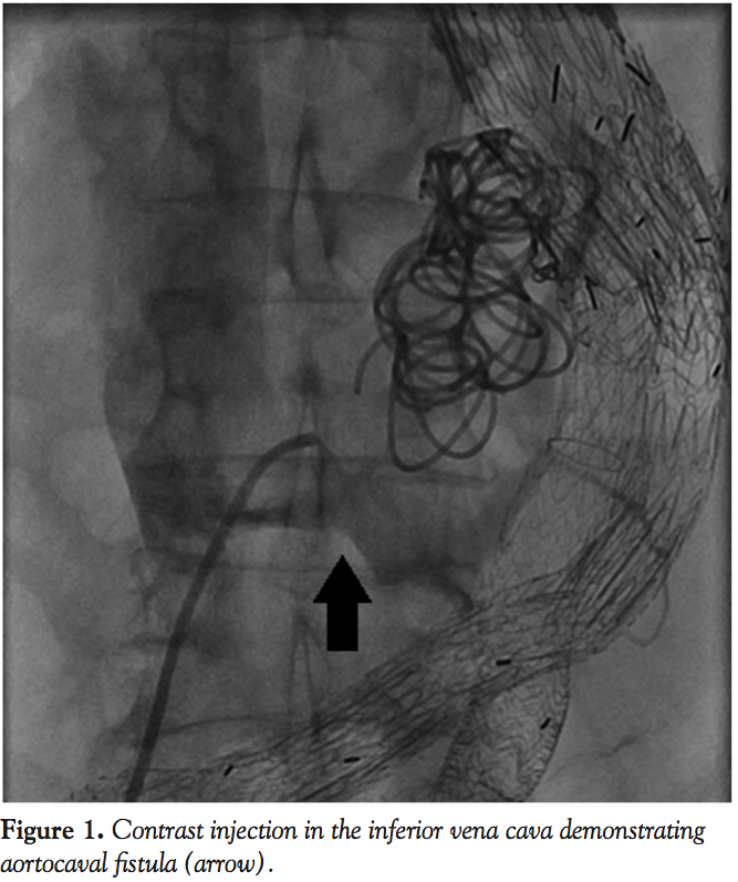 - Lau LL, O’Reilly MJ, Johnston LC, Lee B. Endovascular stent-graft repair of primary aortocaval fistula with an abdominal aortoiliac aneurysm. J Vasc Surg 2001;33(2):425–428.