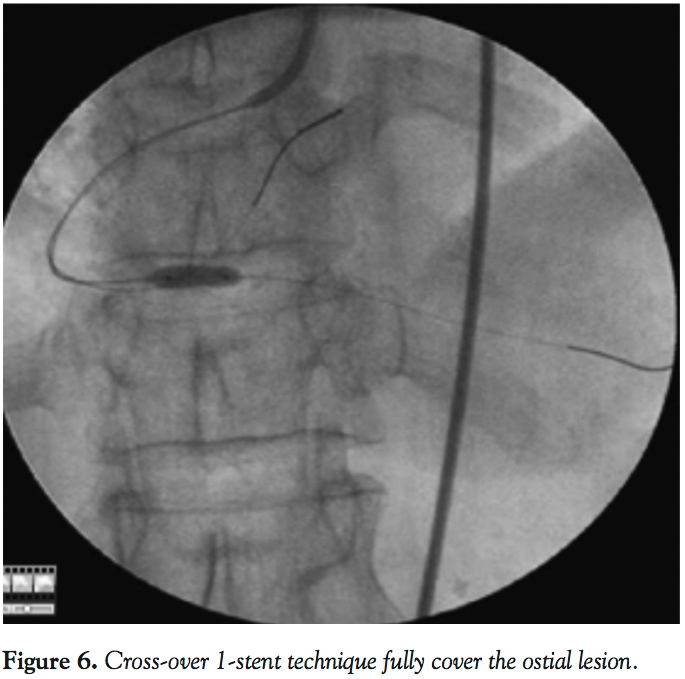 Despite the limitations of this technique, we still feel there is a role for the Szabo technique in ostial stent placement. Some of the pitfalls of the Szabo technique can be corrected. We believe that there is a steep learning curve for this technique before it can be applied efficiently in the treatment of all ostial lesions. Part of this learning curve is to gain the knowledge of which anatomy is not suitable for using the Szabo technique, such as tortuous vessels or calcified lesions. All lesions must be adequately predilated. To avoid stent dislodgement, the anchor wire can be inserted into the last stent strut without inflating the balloon. The stent should then be adequately re-crimped. The stent should be deployed at low pressure and the anchor wire should be removed using a balloon while applying pressure on the wire to avoid deformation. As a final step, postdilatation using a high-pressure balloon inflation is required to repair the stent.
